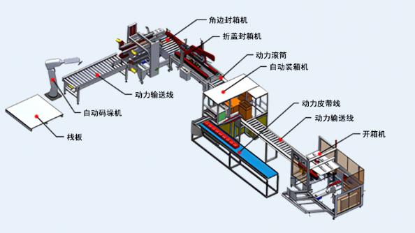 通过行业积累,我们通过跨行合作,先后成功开发出从开箱、标签、喷码、装箱、封箱、堆码、AGV运输的系列解决方案,实现无人化操作。